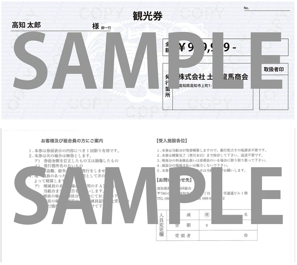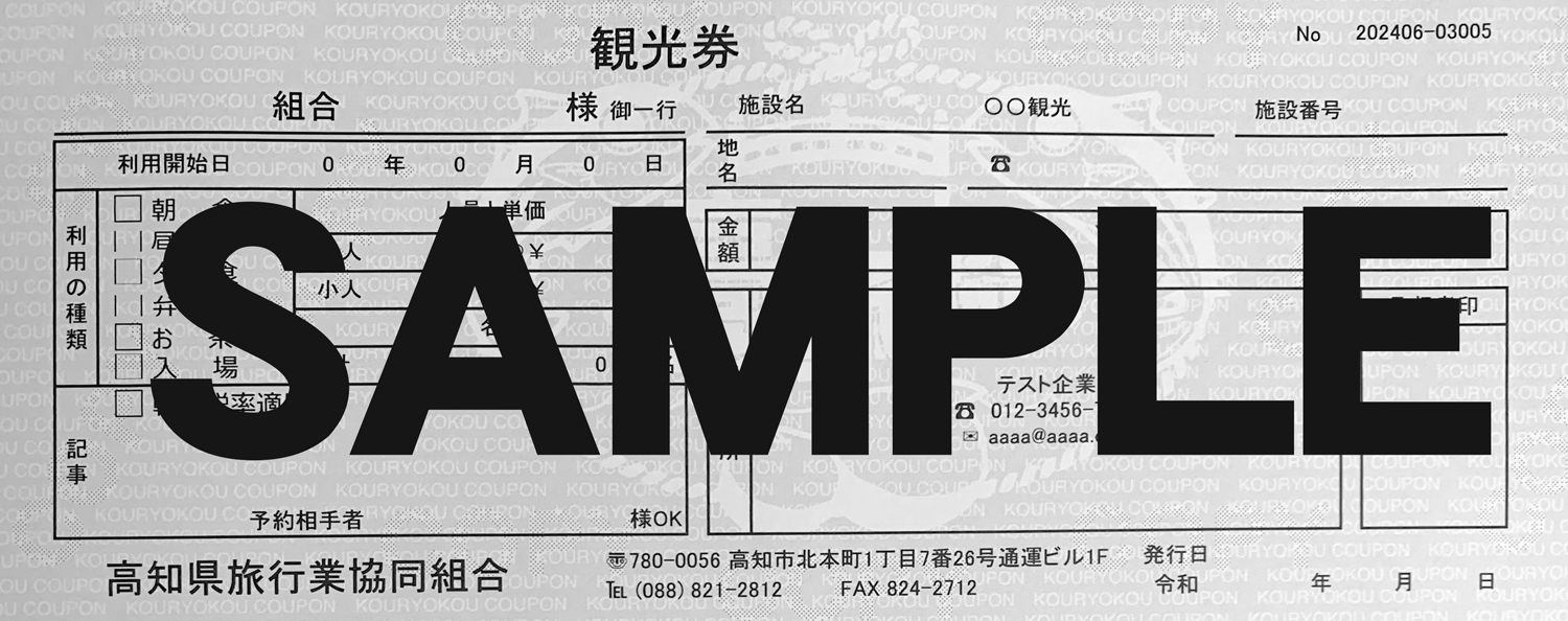 協同組合加盟店が【クーポン事業規約】により正しく発券した「組合クーポン」は高知県旅行業協同組合が完全保証で精算します。